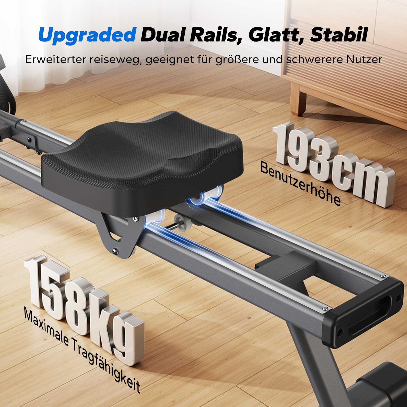 - Verbesserte Doppelschienen für Stabilität: Das verbesserte doppelschienen-design bietet eine höhere haltbarkeit und stabilität im vergleich zu herkömmlichen einspursystemen. Mit einer tragfähigkeit von bis zu 158 kg und einer gleitschienenlänge von die gleitschienenlänge beträgt 165 cm, geeignet für personen unter 1,9 m körpergröße.